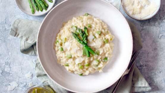 Odlična, hitro pripravljena kremna rižota s šparlgji obogatena s topljenim sirom in parmezanom. SESTAVINE: POSTOPEK: Čebulo olupimo in drobno sesekljamo. V globlji ponvi segrejemo oljčno olje, na katerem počasi prepražimo čebulo s pol žličke soli. Dodamo riž, ki ga med mešanjem posteklenimo. Primešamo trikotnike sira in česen v prahu ter vse skupaj zalijemo z vročo vodo. Vode uporabimo le toliko, da … Nadaljujte z branjem Kremna špargljeva rižota