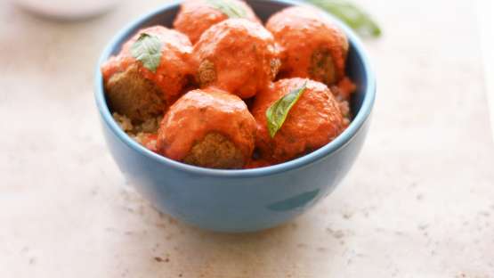 Veganske “mesne” kroglice v omaki iz pečenih paprik